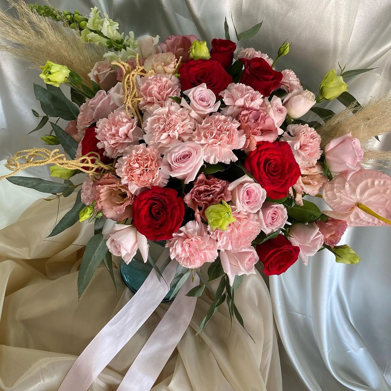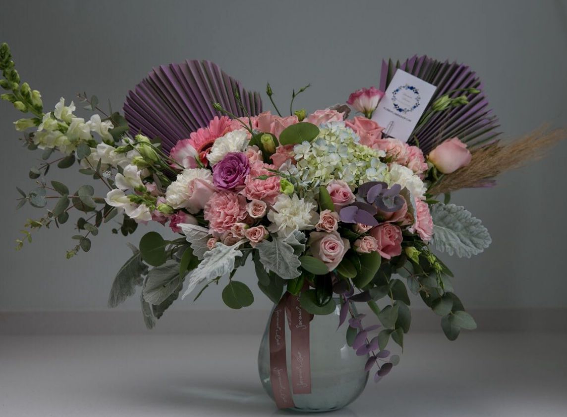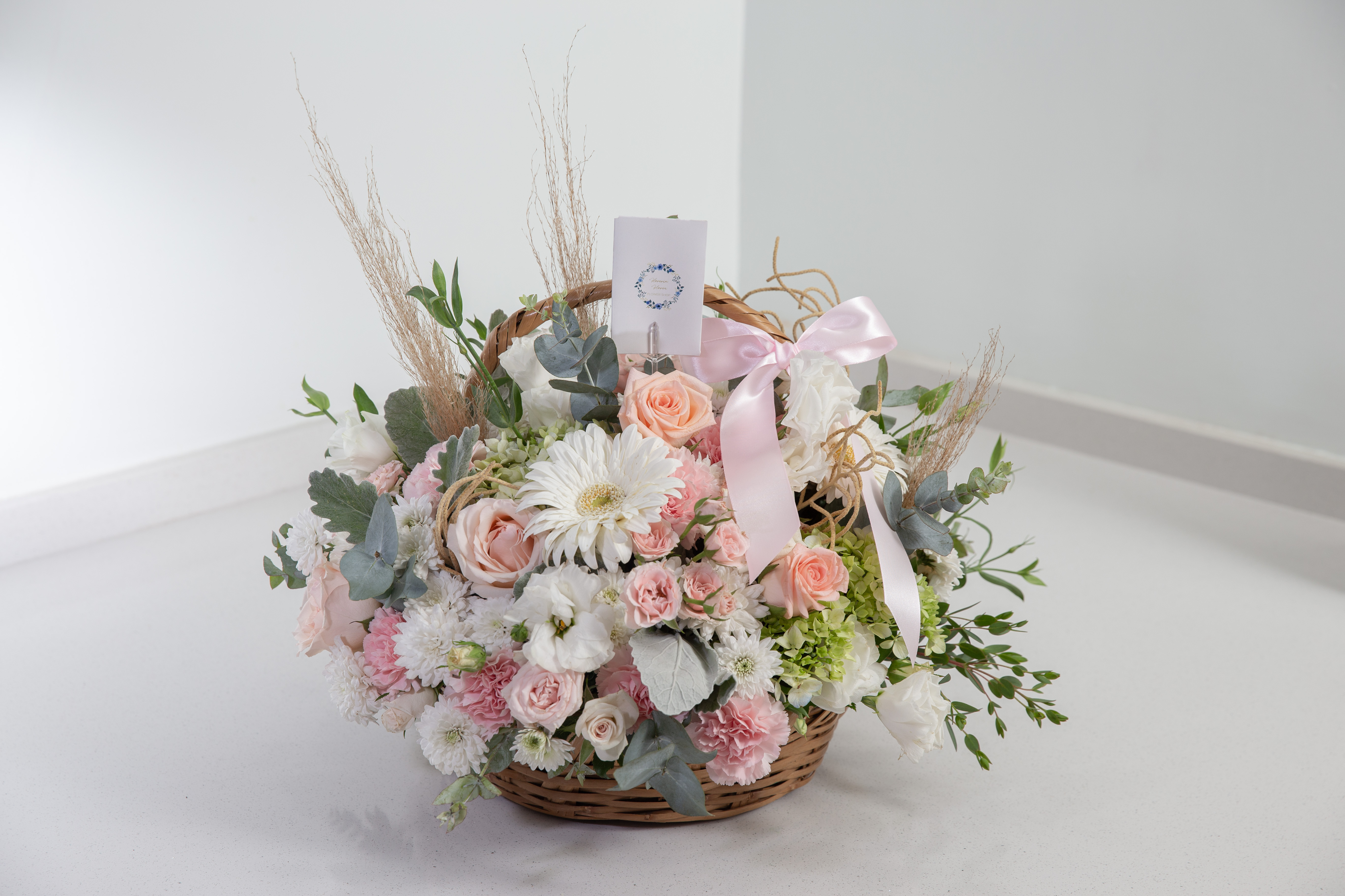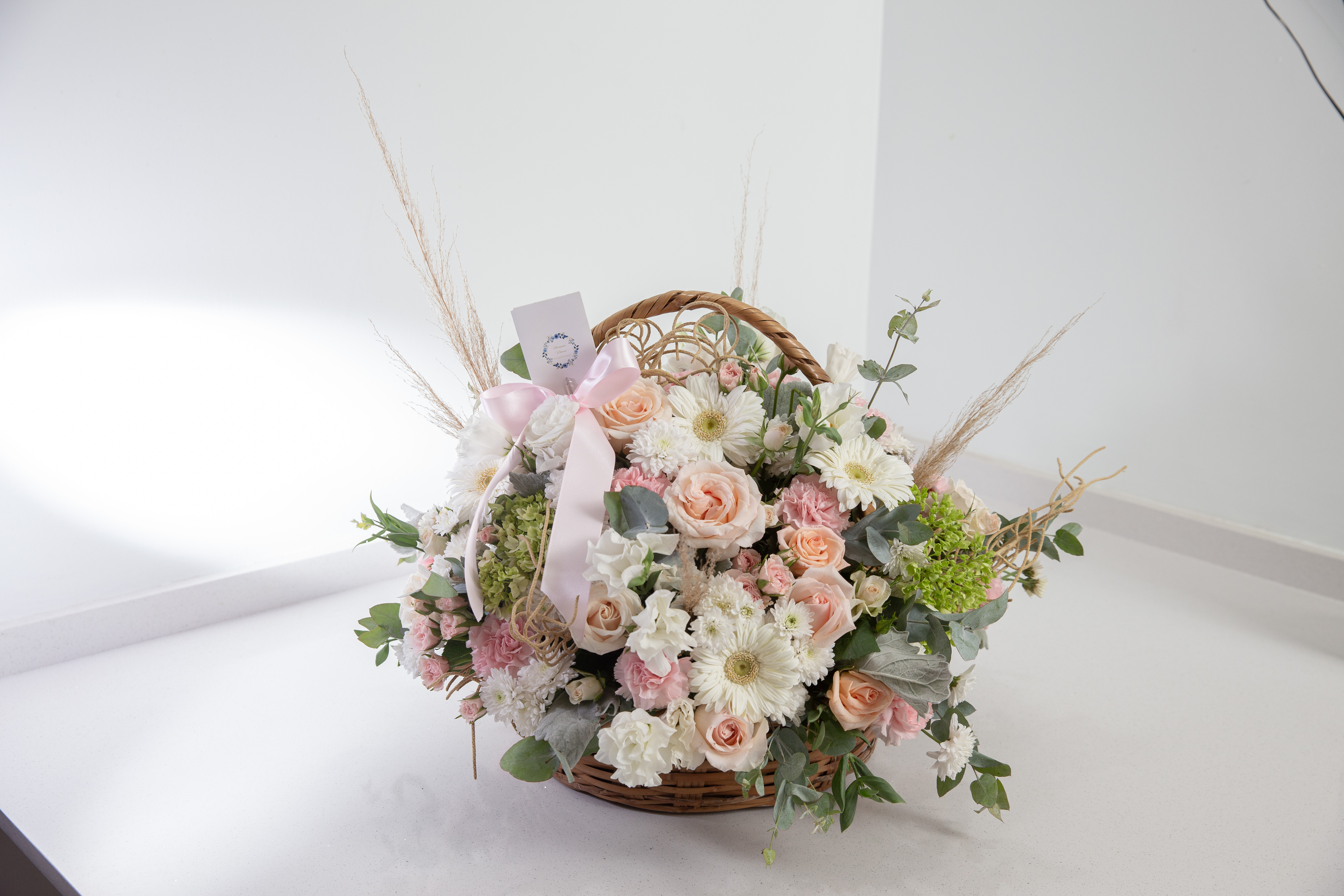 Nuestra colección reúne diseños florales que equilibran elegancia y sensibilidad, presentados en finos jarrones, bouquets cuidadosamente estructurados y canastas que abrazan cada detalle.